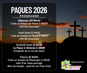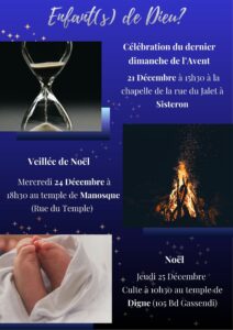 Tous les 4èmes dimanches au temple de Manosque de 10h30 à 15h30