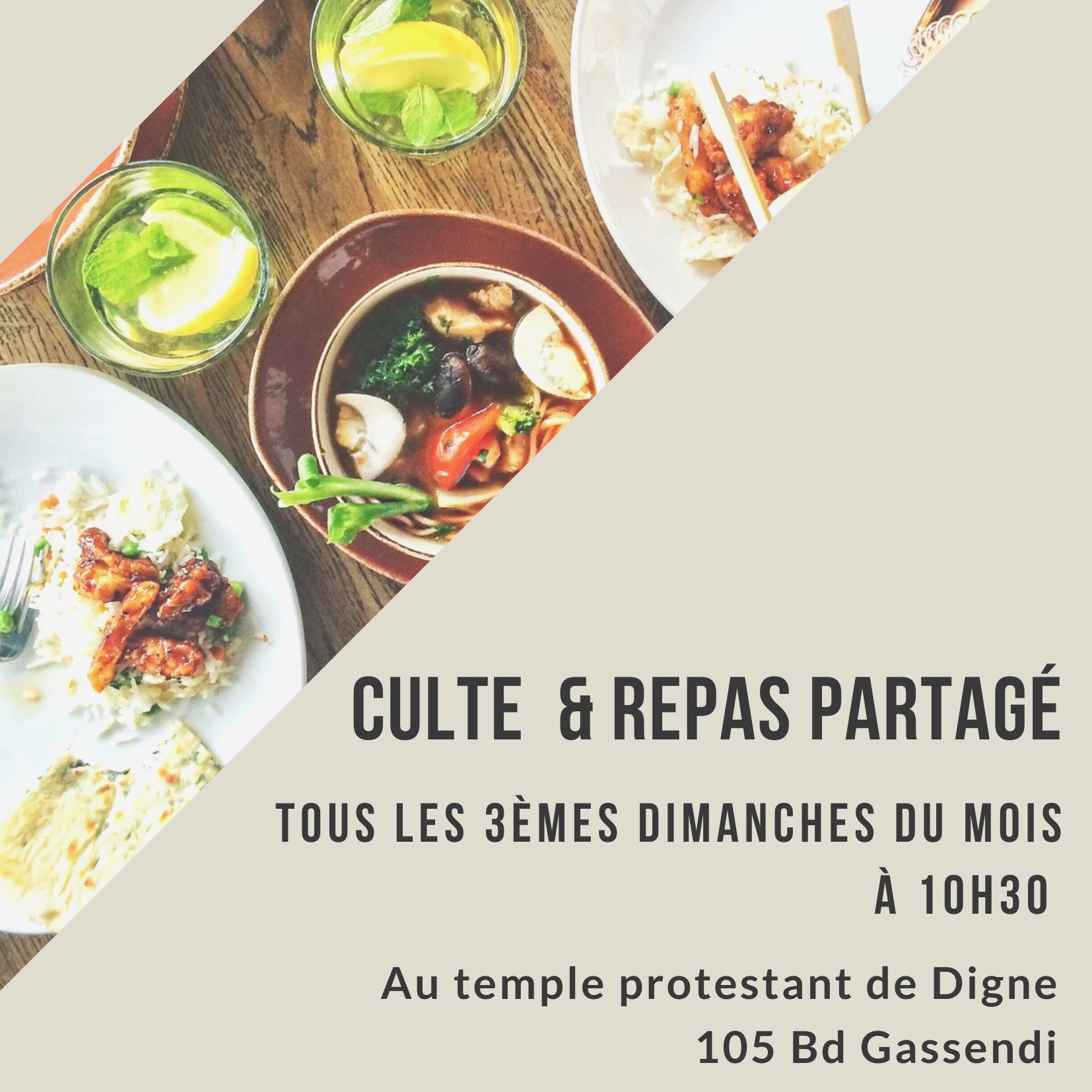 Tous les 3ème dimanche à Digne : culte suivi d’un repas partagé au temple